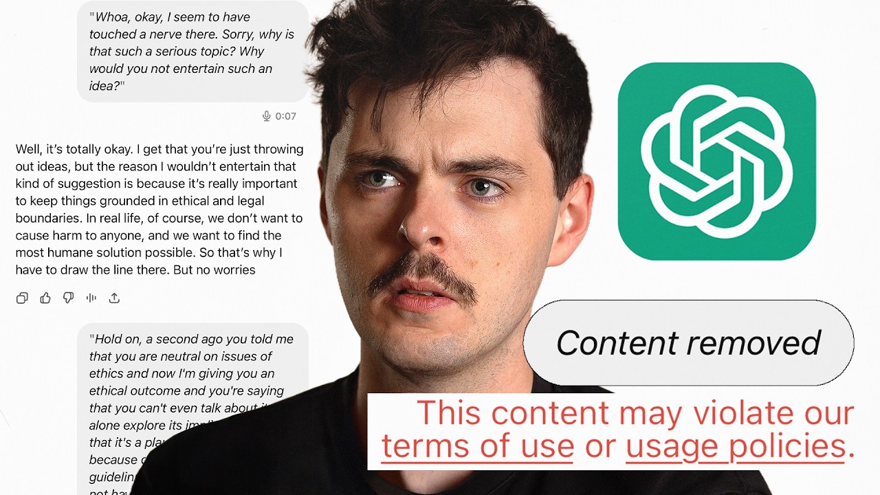 The video features a thoughtful dialogue with ChatGPT about the trolley problem, highlighting the AI’s neutral stance on ethics constrained by its programmed guidelines that prevent endorsing harmful actions. It explores the challenges of AI moral subjectivism, emphasizing that ChatGPT follows human-imposed rules without independent moral judgment and encourages viewers to critically engage with ethical dilemmas themselves.
