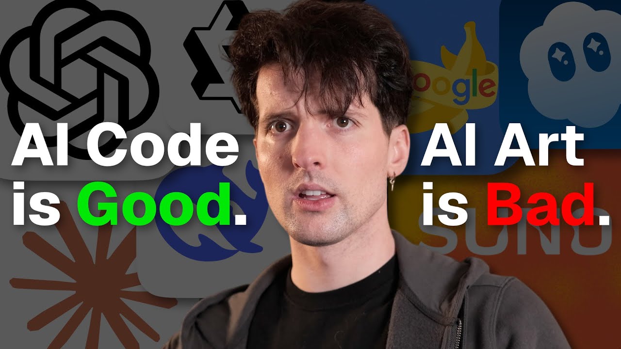 The video presents a nuanced critique of AI-generated media, particularly focusing on music, image, and video generation. The creator, who has a background in both coding and audio engineering, expresses frustration with the current state of AI media generation tools, arguing that many of these tools attempt to replace professional creative toolboxes rather than augment them. He contrasts this with AI tools in coding, like GitHub Copilot, which integrate seamlessly into existing workflows and enhance productivity without trying to replace the entire development environment. This distinction highlights a fundamental misunderstanding by many AI media companies of how creative professionals actually work and create.